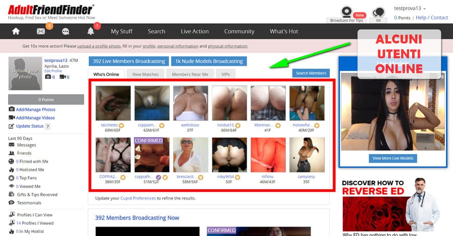 L’iscrizione ad Adult Friend Finder è gratuita, ma chiaramente limitata a specifiche funzioni. In ogni caso, è un buon modo per entrare all’interno del portale e guardarsi un po’ intorno, capire che aria tira.